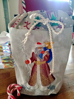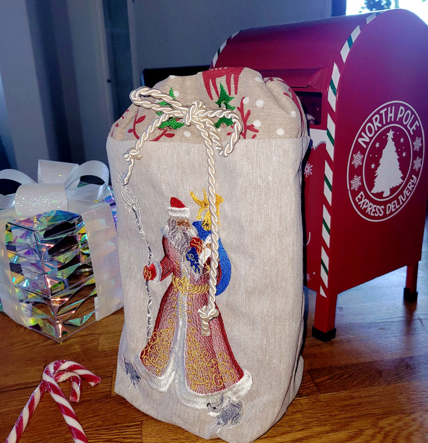 Hier unser traumhafter Weihnachtssack für Groß und Klein. Nachhaltig, mit passendem Innenfutter. So, dass er außen, genau wie innen, einen soliden, guten Eindruck hinterlässt. Natürlich kannst Du eine Wunschbestickung bestellen oder ihn so, wie abgebildet erwerben.